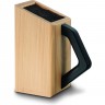 Корпус подставки выполнен из древесины, внутри синтетический наполнитель, который с лёгкостью можно вытащить и при необходимости промыть. Подставку можно ставить как вертикально, так и под углом на ручку.Подставка очень устойчива и не передвигается, когда в неё вставляют/вытаскивают нож.